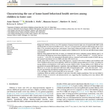 Home health care, which has been shown in general to reduce the number of child hospital admissions, shorten hospital stays, and cost less than in-hospital care, may benefit children in foster care with significant medical needs. Through an analysis of Medicaid data, the project funded through this grant will examine if and how children in foster care are accessing home health care services.
