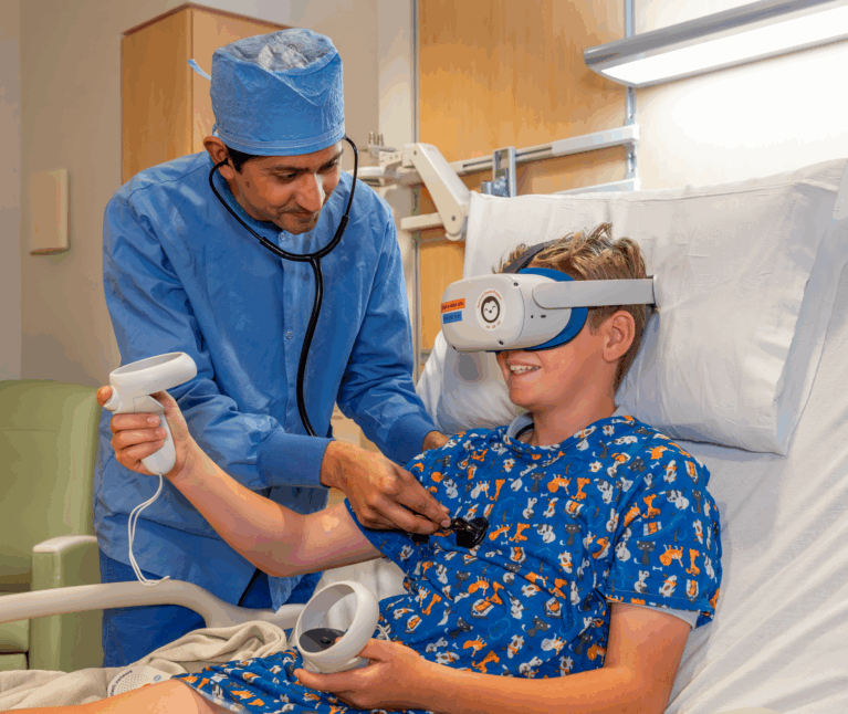 The Chariot Program at Lucile Packard Children’s Hospital Stanford is changing the narrative, one virtual reality headset and robot dog at a time. Using technology, Chariot helps patients feel less anxiety, manage pain, heal, and even have fun during tough moments.