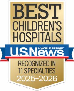 The hospital ranked in all 11 specialties, with several ranking in the top 10: nephrology (No. 3), neonatology (No. 3), neurology and neurosurgery (No. 6), pulmonology (No. 8), and gastroenterology and GI surgery (No. 8). The hospital also ranked in cancer, diabetes and endocrinology, cardiology and heart surgery, orthopedics, urology, and pediatric and adolescent behavioral health.